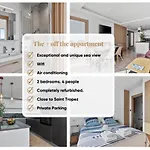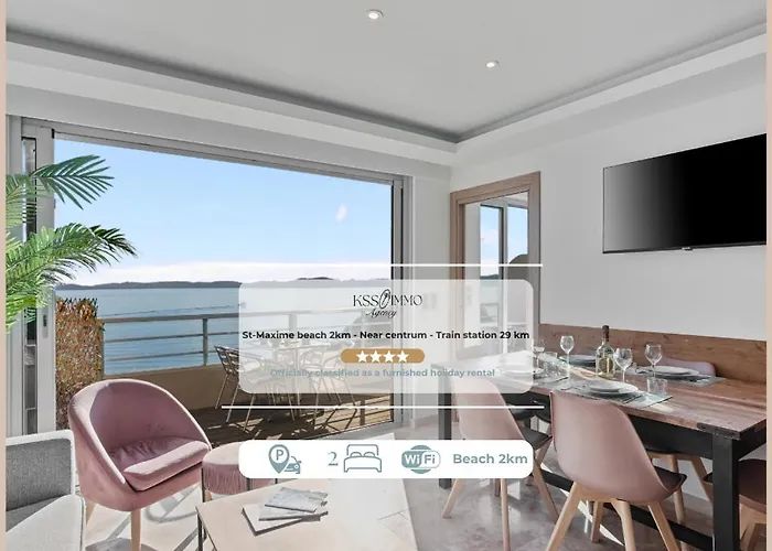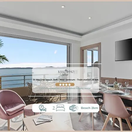 A Vue Mer - Neuf - Centre Ste Maxime apartman rendelkezik terasszal, konyhával és teljesen felszerelt konyhával, továbbá olyan kényelmekkel, mint a mosógép és klímaberendezés.